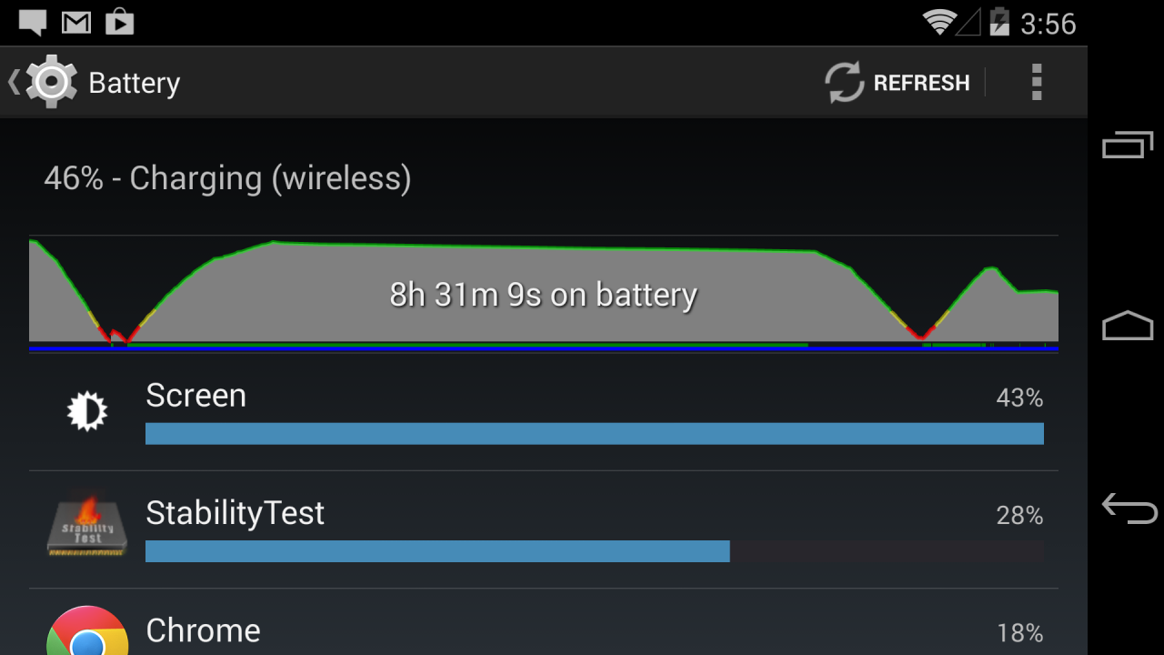 The Nexus 5 and Nexus 7 will both draw more power through a micro USB charger than the wireless charger, which is par for the course—wireless charging usually isn't as fast as charging through a cable. These differences in power draw are reflected in charge times. The Nexus 7 takes about two hours and 56 minutes to charge using its power adapter, but six hours and six minutes to charge using the wireless charger. The wireless charger draws about 25 percent less power, but it takes 100 percent more time to charge the tablet. Keep in mind that the convenience of wireless charging also takes longer and is less efficient.